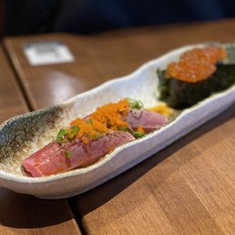 A good sushi place whose quality is not bad but the price is good, and the service is speedy and stellar.There is a great deal of sushi places all over, but this one is quite good for a quick bite.The inside is a bit small compared to the outside and they don’t have any sushi bar seats which can be a highlight.They brought out drinks and some free miso soup to start, we ordered off their large menu (both sides), and got some sushi and appetizers.Everything came out quickly, and they constantly checked on us. The sushi was pretty good but the hand rolls just sort of fell apart and they did mess up a couple of the sushi items but they fixed it very quickly. So overall not a bad place, the prices are very reasonable, they have a good range of rolls and sushi, and everything was fresh.